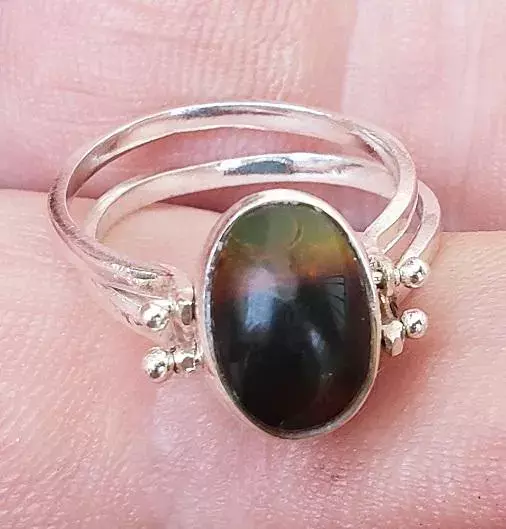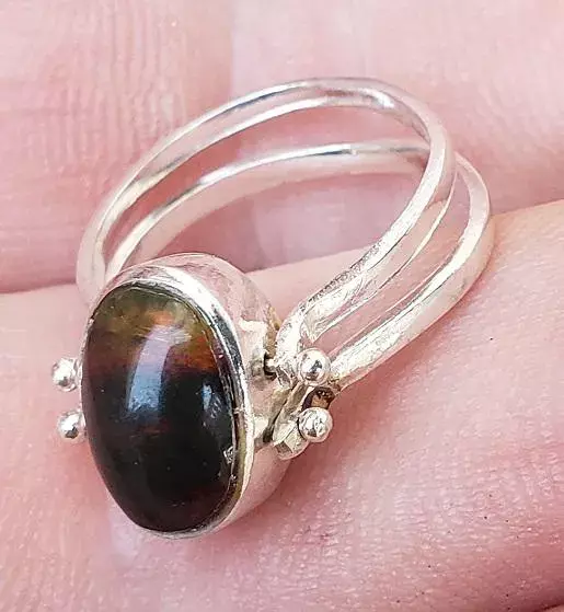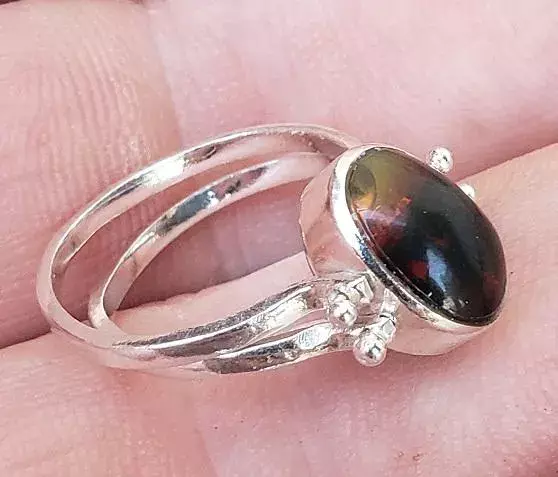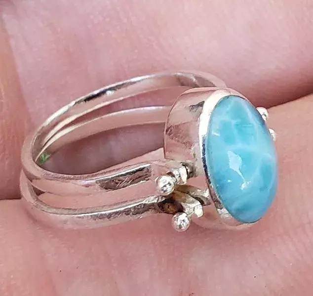 THIS REVERSIBLE RING IS HANDMADE WITH NATURAL LARIMAR - AMBER gemstones and 925 sterling silver.
