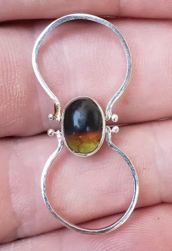 - Flip 2in1 LARIMAR-AMBER gemstones 925 sterling silver reversible ring (mi-7)