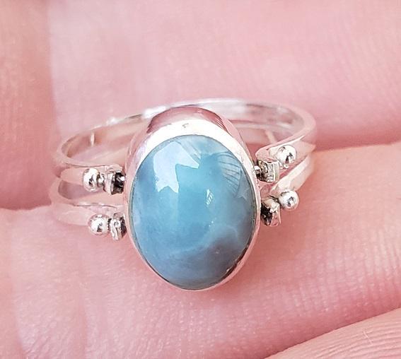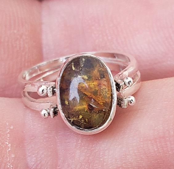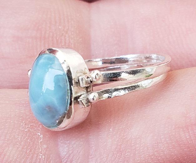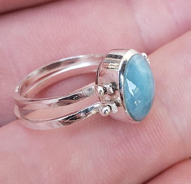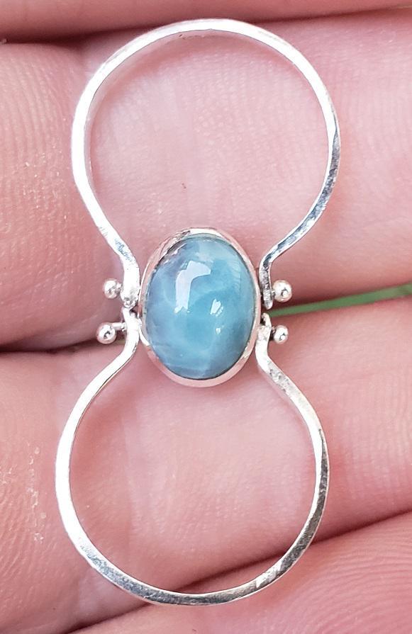 THIS REVERSIBLE RING IS HANDMADE WITH NATURAL LARIMAR - AMBER gemstones and 925 sterling silver.