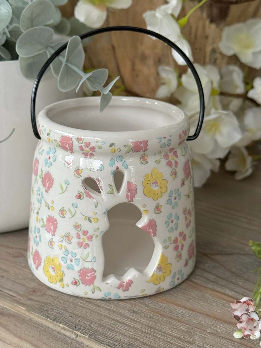 Floral Ceramic Tea light Holder with Bunny Cut Out.