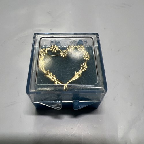 - Floral Open Heart Gold Tone Lapel Pin In Vintage Box