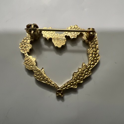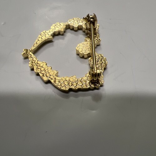 This vintage lapel pin features a heart-shaped design with floral accents, crafted in gold tone metal. Ideal for various occasions such as engagements, Mother's Day, weddings, anniversaries, birthdays, and more, the pin comes in a vintage box for a charming presentation. Perfect for adding a touch of elegance and sentiment to any outfit, this heart-shaped pin is a timeless piece of jewelry suitable for gifting or personal wear.