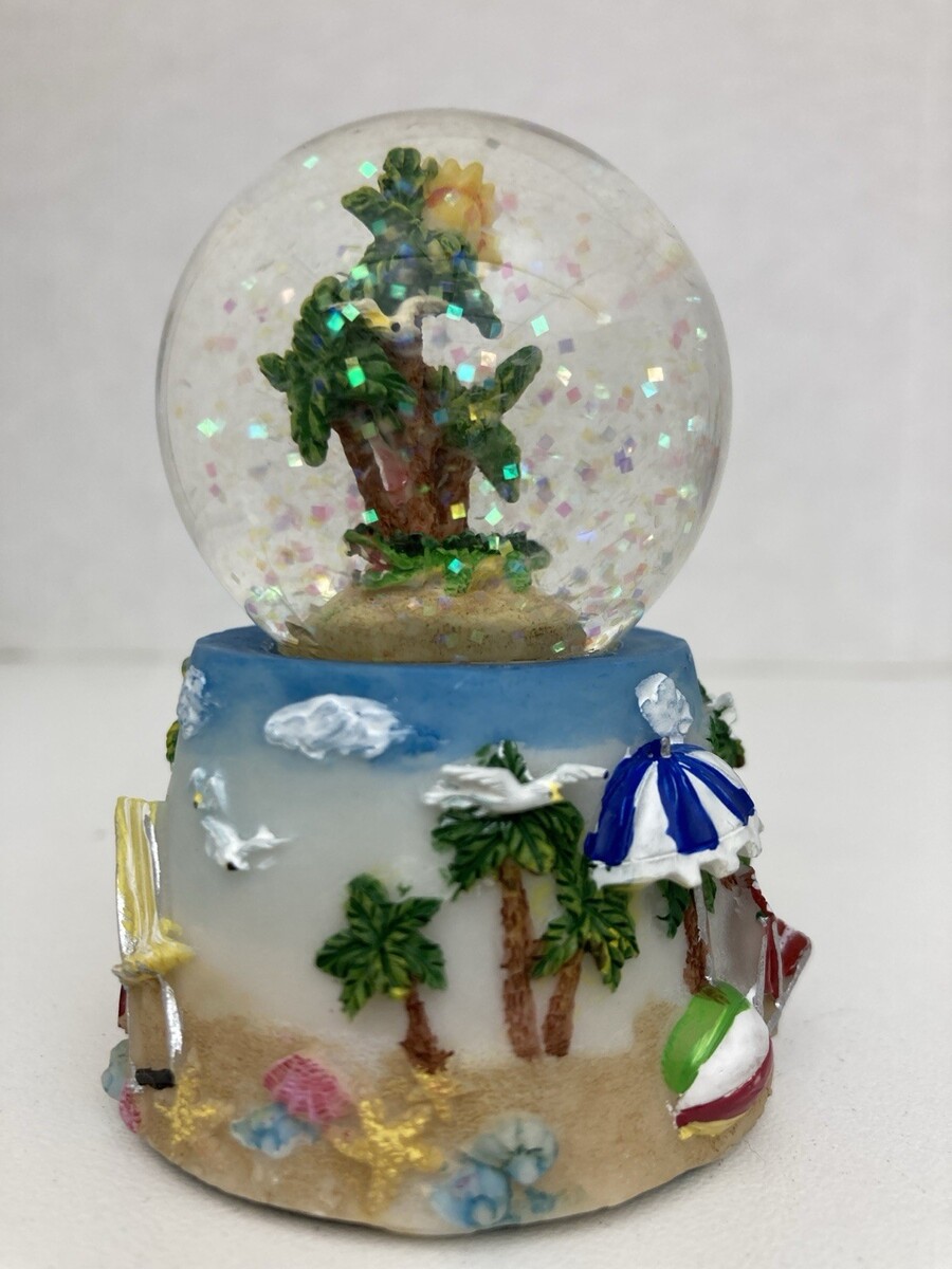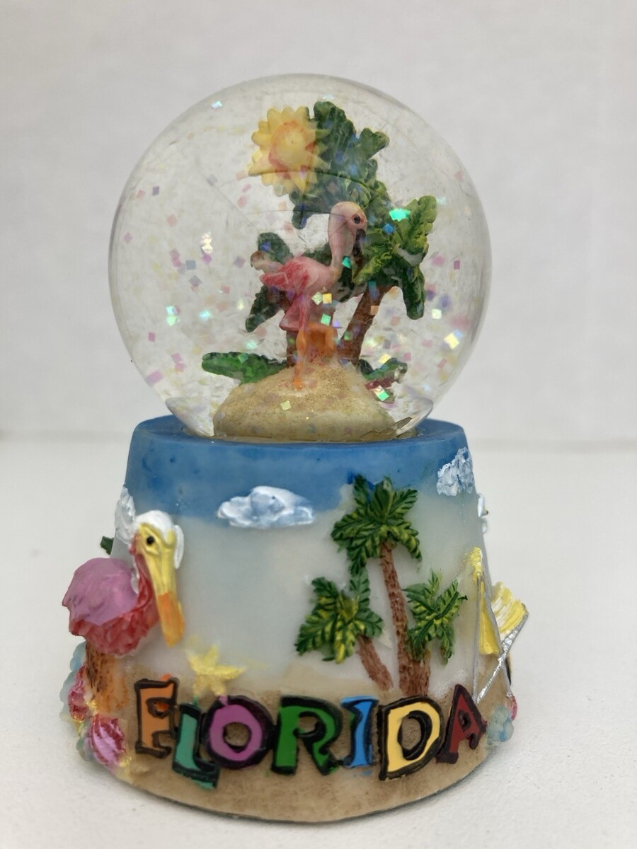 - Florida Flamingo Gator Palm Trees Beach Snow Globe