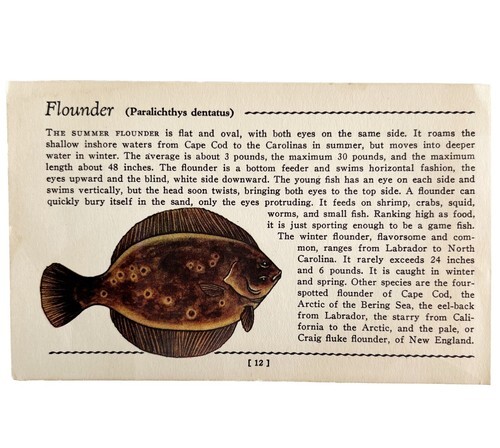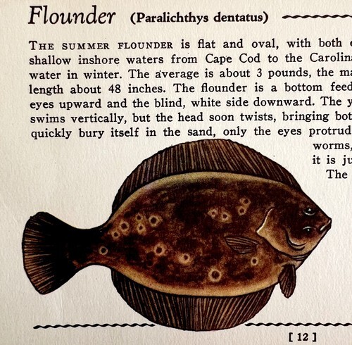 Flounder 1939 Salt Water Fish Art Gordon Ertz Color Plate Print Antique PCBG19