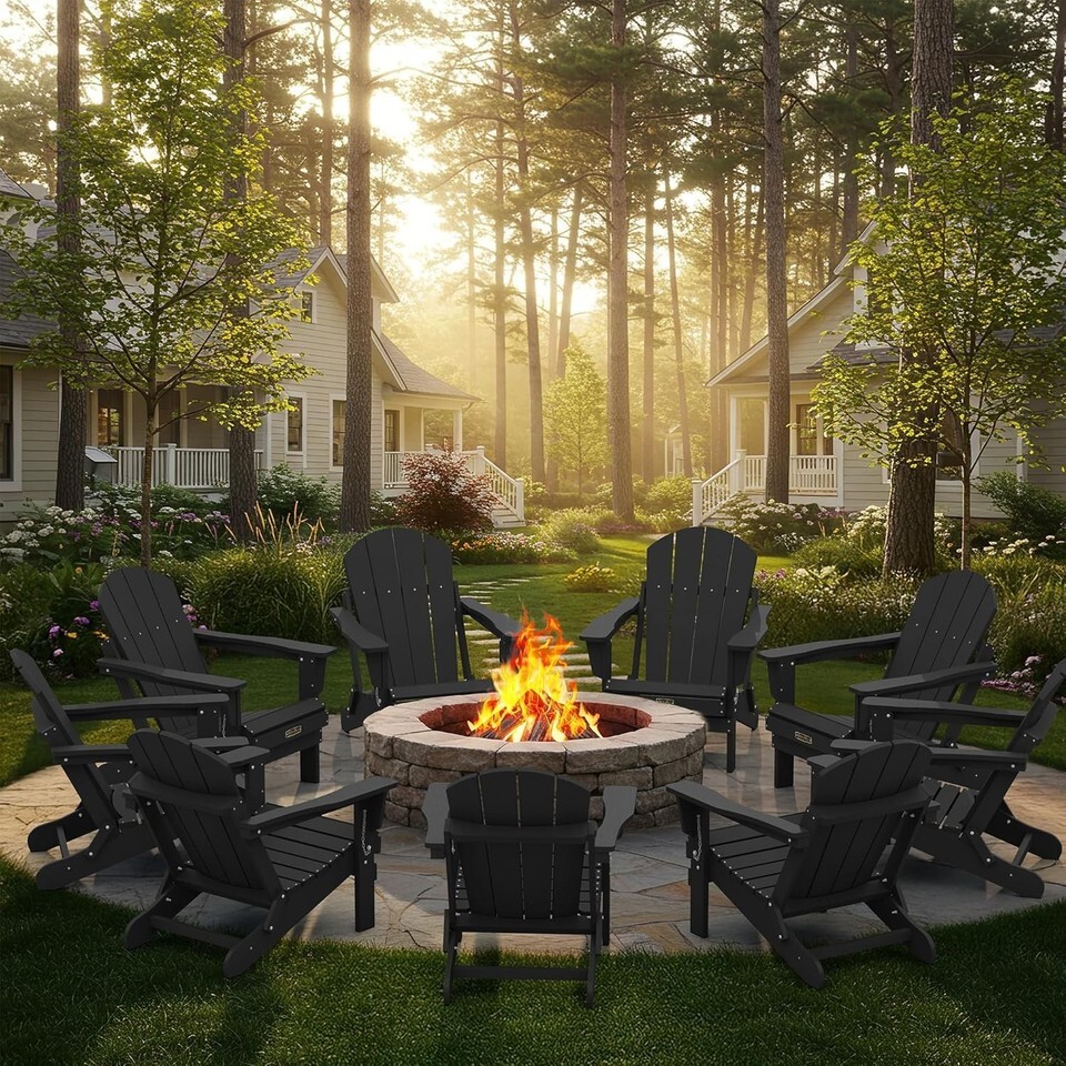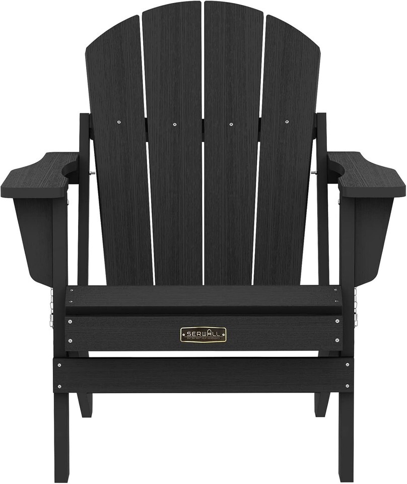 Folding Adirondack Chair Outdoor Weather Resistant Patio Garden Deck Camping - Black