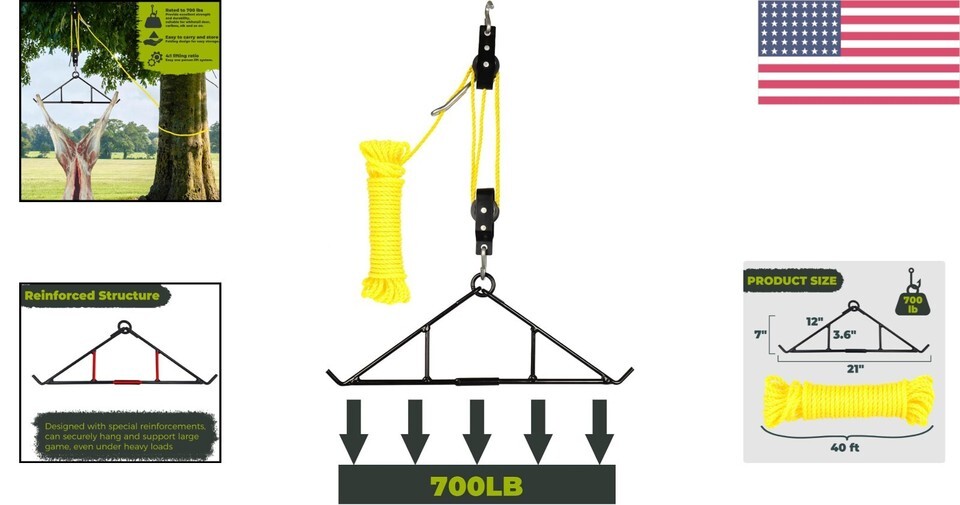 Versatile Use: The gambrel and hoist can be used separately, allowing for various applications and increasing usability with the included 44FT poly hoist rope.