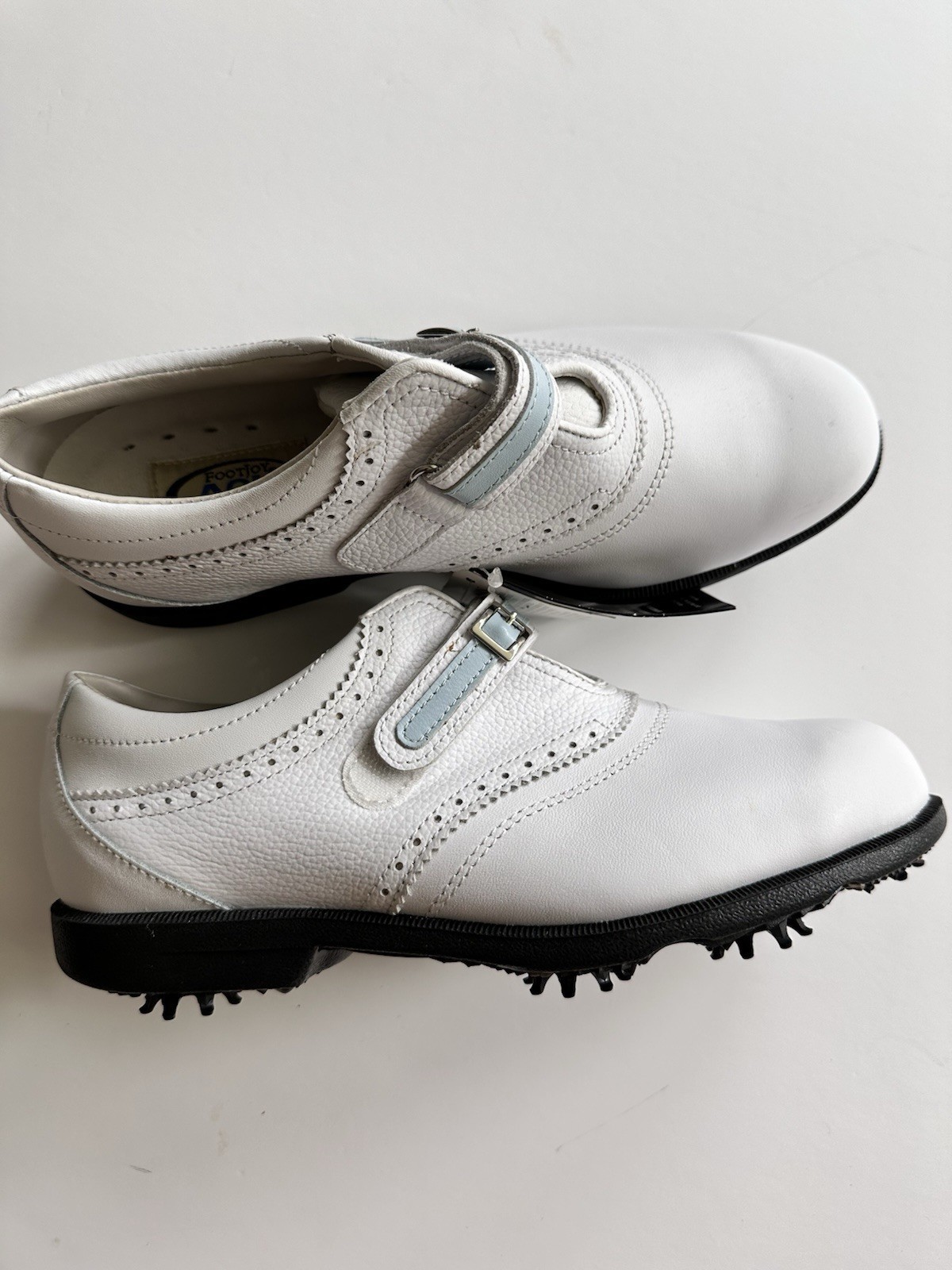 - Foot Joys Classic Women Golf Shoes Women 7 White Blue Leather Strap Spikes