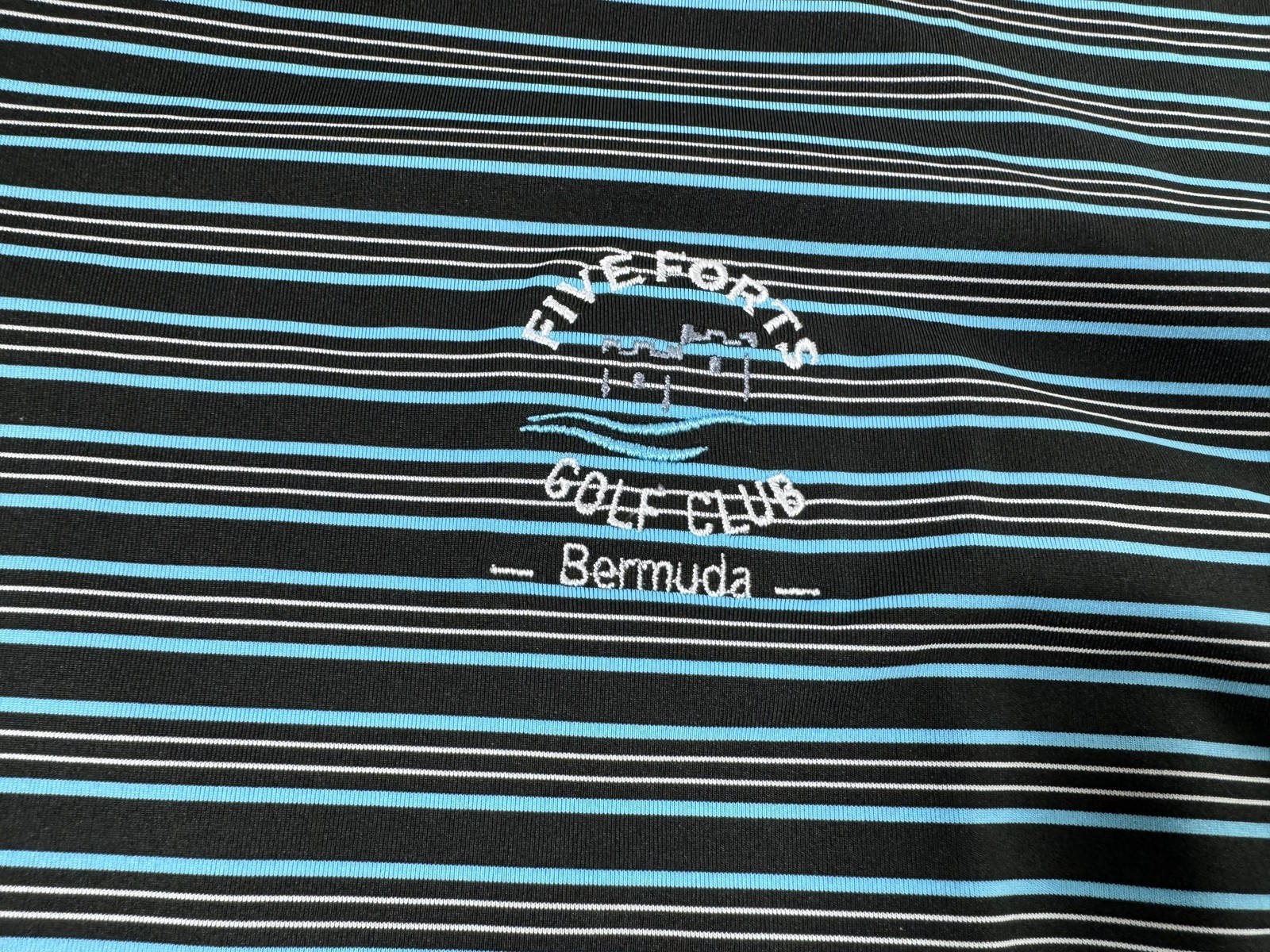 Logos/Embroidery: Five Forts Golf Club Bermuda chest embroidery; St. Regis Bermuda sleeve embroidery; FJ logo at back neck