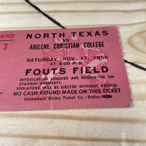 - Football Ticket Stub 1956 North Texas Vs Abilene Christian College Used Fouts