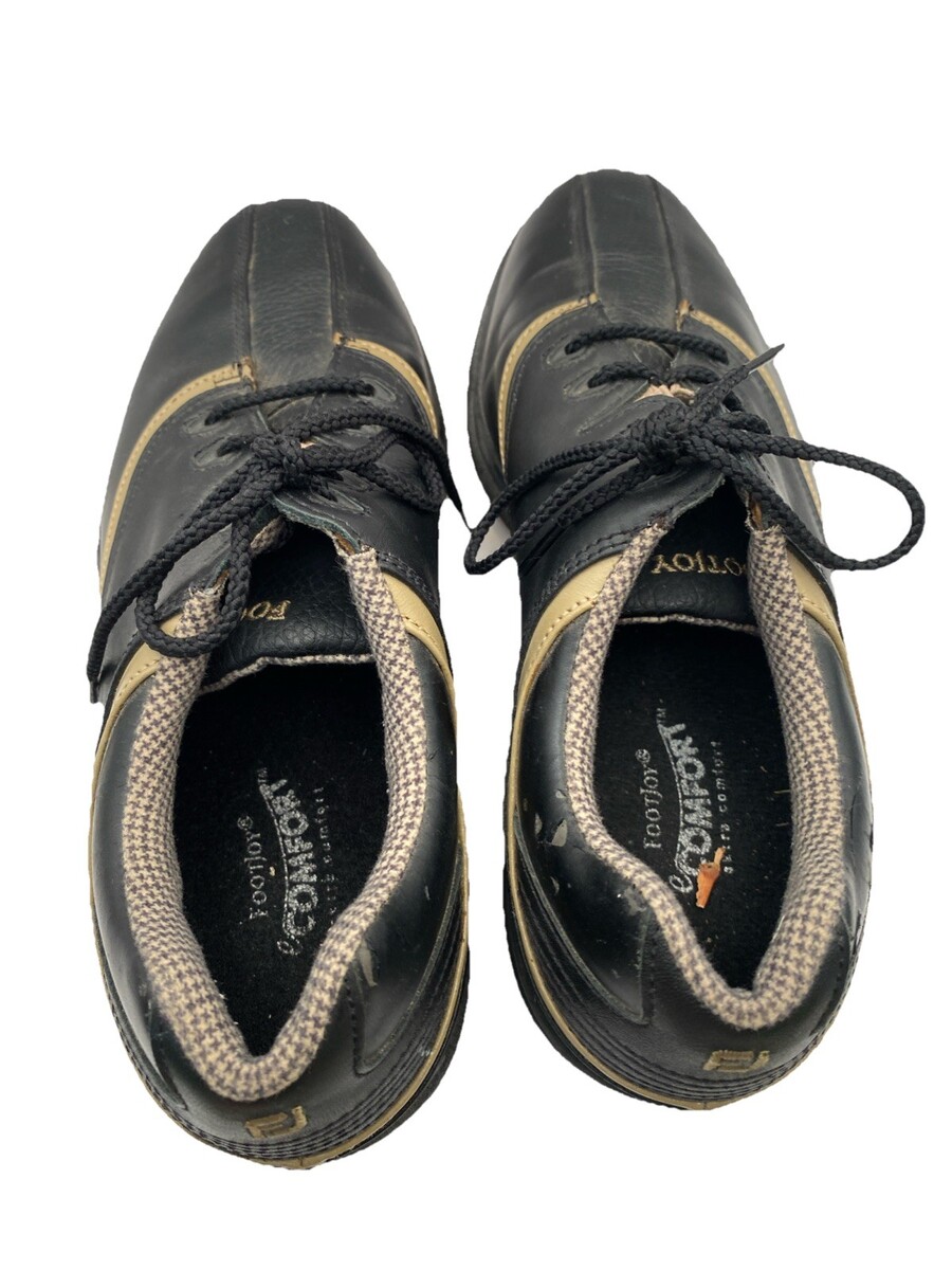 Footjoy Women's Golf Shoes Size 8 Black Leather with Tan Trim Model 98381 Soft Spikes Very Good Condition. See all photos. Non-smoking home. Be sure to check out my other items! I am happy to combine shipping charges. Please note: My goal is always 100% complete customer satisfaction. If for any reason you feel your item arrives "not as described," please contact me before leaving feedback. I am a trading assistant. I can sell items for you! |KES-ALX|