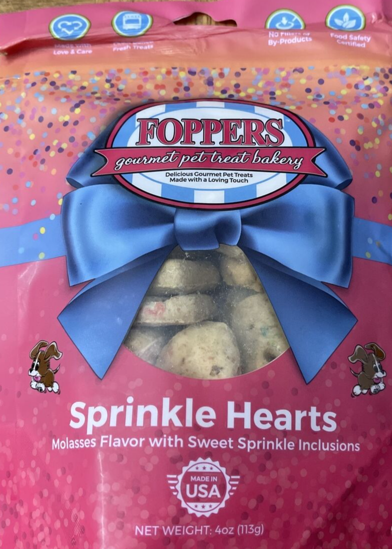 - Foppers Gourmet Sprinkle Hearts Dog Treats 1ea 4oz Pkg-BRAND NEW-SHIPS N 24 HRS