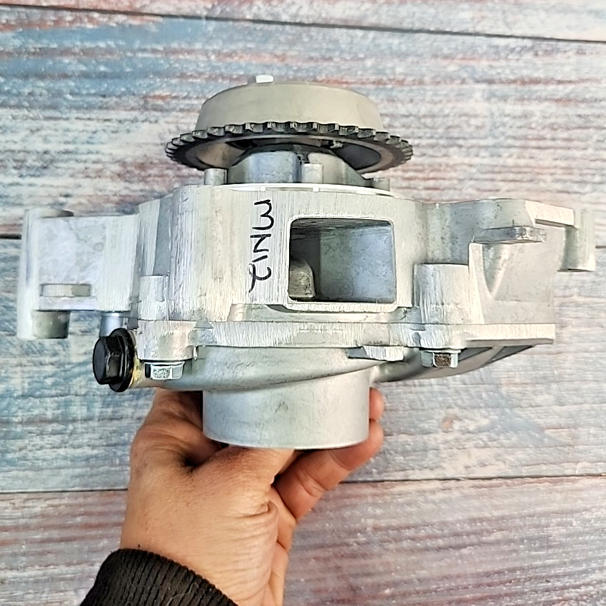 Exact item is shown. New open box without original packaging. Aluminum housing with 6 vane steel impeller. Includes timing chain sprocket shown. Item weight 4 lbs. Includes the gaskets shown. Made in China. No returns if installed. This item is new with opened or damaged packaging. It may or may not be a customer return. It has been inspected and passed quality control to insure the condition described and contents are accurate. It may show minor wear from handling.