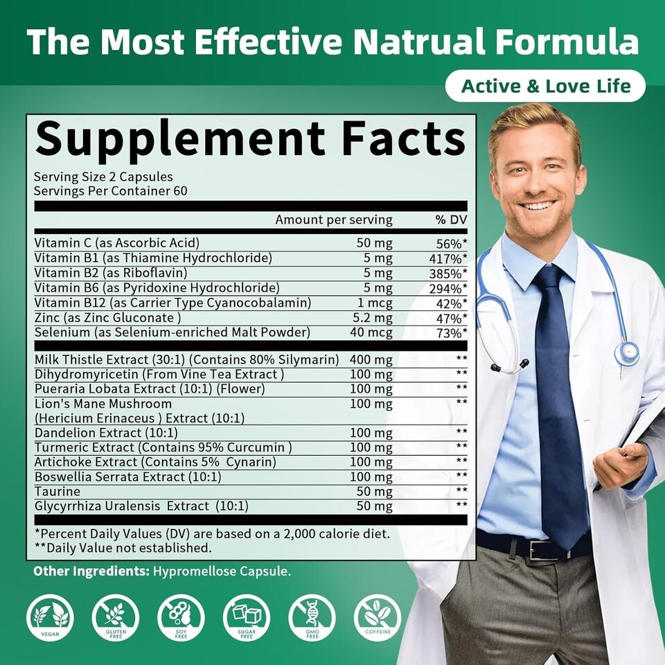 Ingredients: Artichoke,Milk Thistle,Dandelion,Vine Tea,DHM from Lion's Mane Mushroom