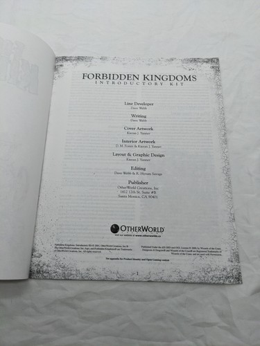 - Forbidden Kingdoms Introductory Kit RPG Booklet