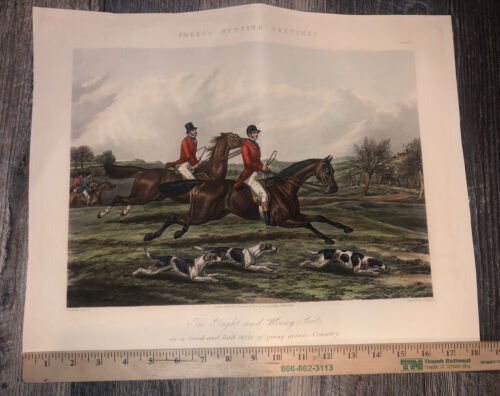 Up for sale antique print of hunting sketches. Drawn by H. Alken. Engraved by J. Harris. Measures 18? x 14.5?. Very good condition with very minor signs of wear such as discoloration .This a Fores?s Hunting sketch.