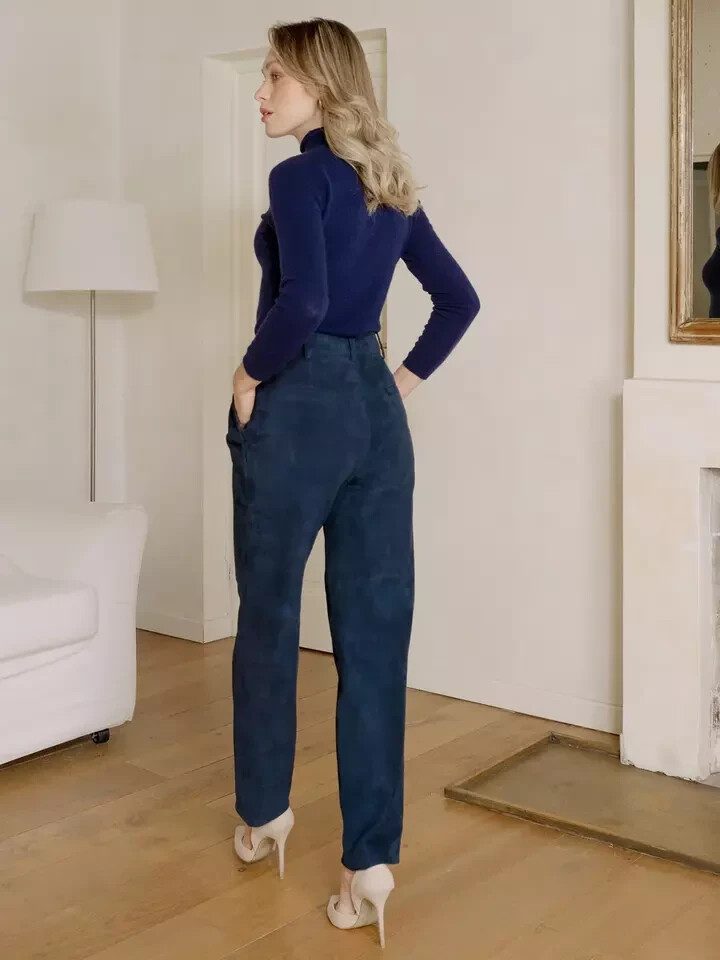 Formal Genuine Handmade Women's Pant Navy Blue Soft Suede Lambskin Stylish Party