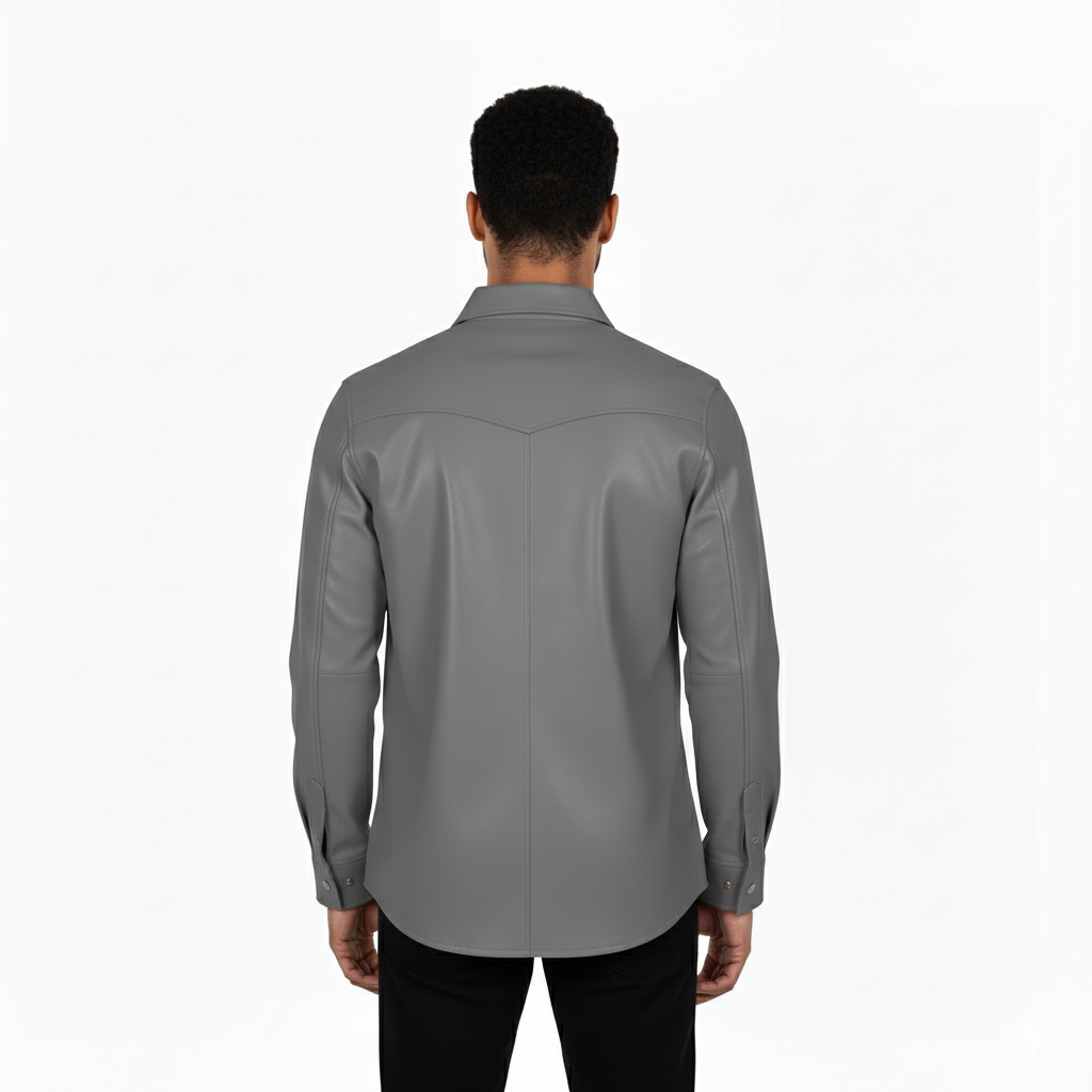 Formal Men's Shirt Biker Fit Handmade Gray Stylish Casual Leather Real Lambskin