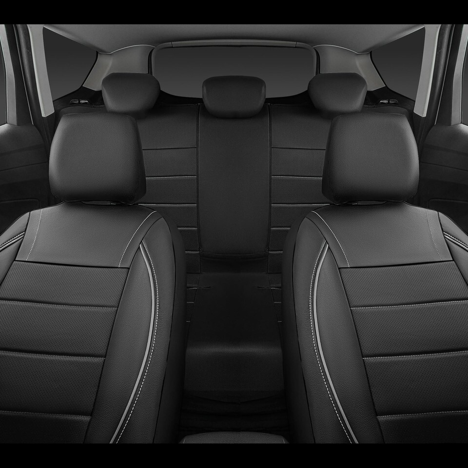 STYLISH BLACK GRAY DESIGN: Made with premium faux leather featuring elegant piping details in a black and gray finish. Adds a modern, luxurious touch to your car interior while enhancing comfort.