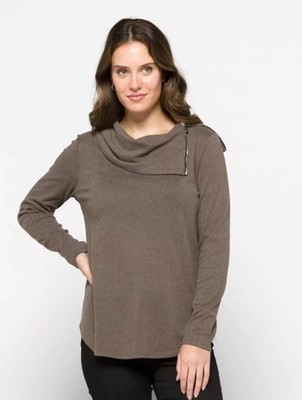 - Fortune & Ivy Women's Med Brown Zipper Detail Cowl Neck Pullover Top NWOT