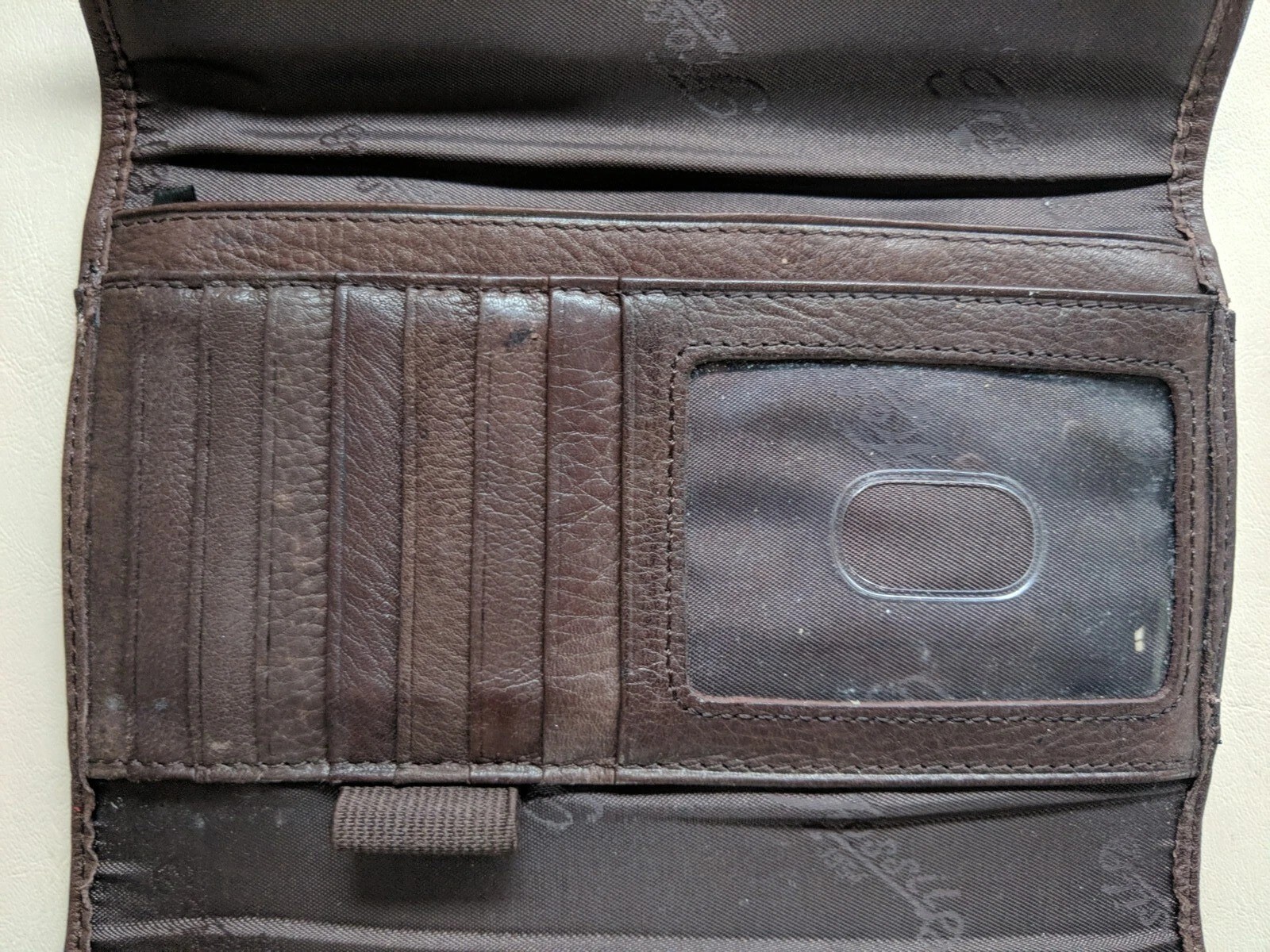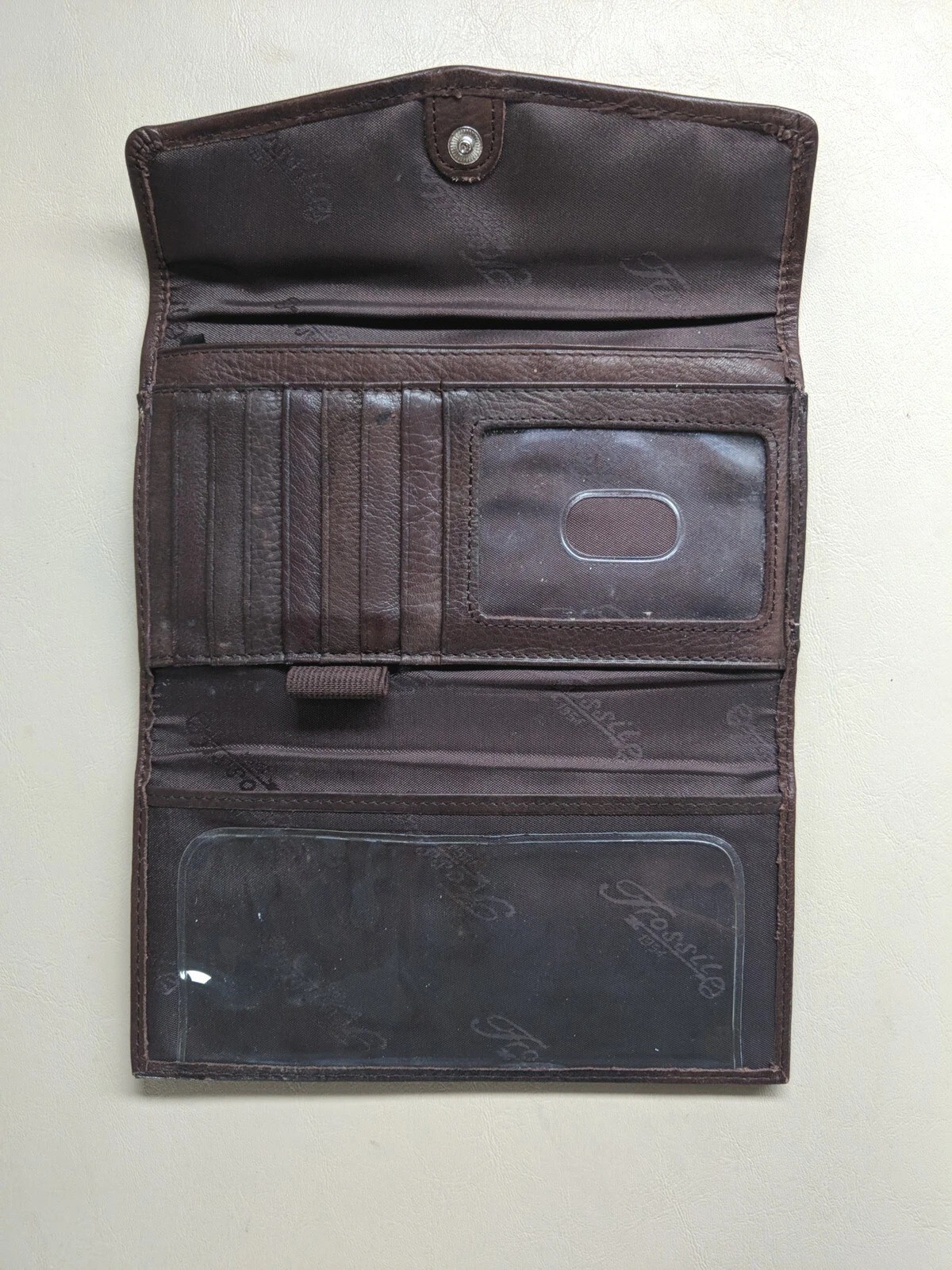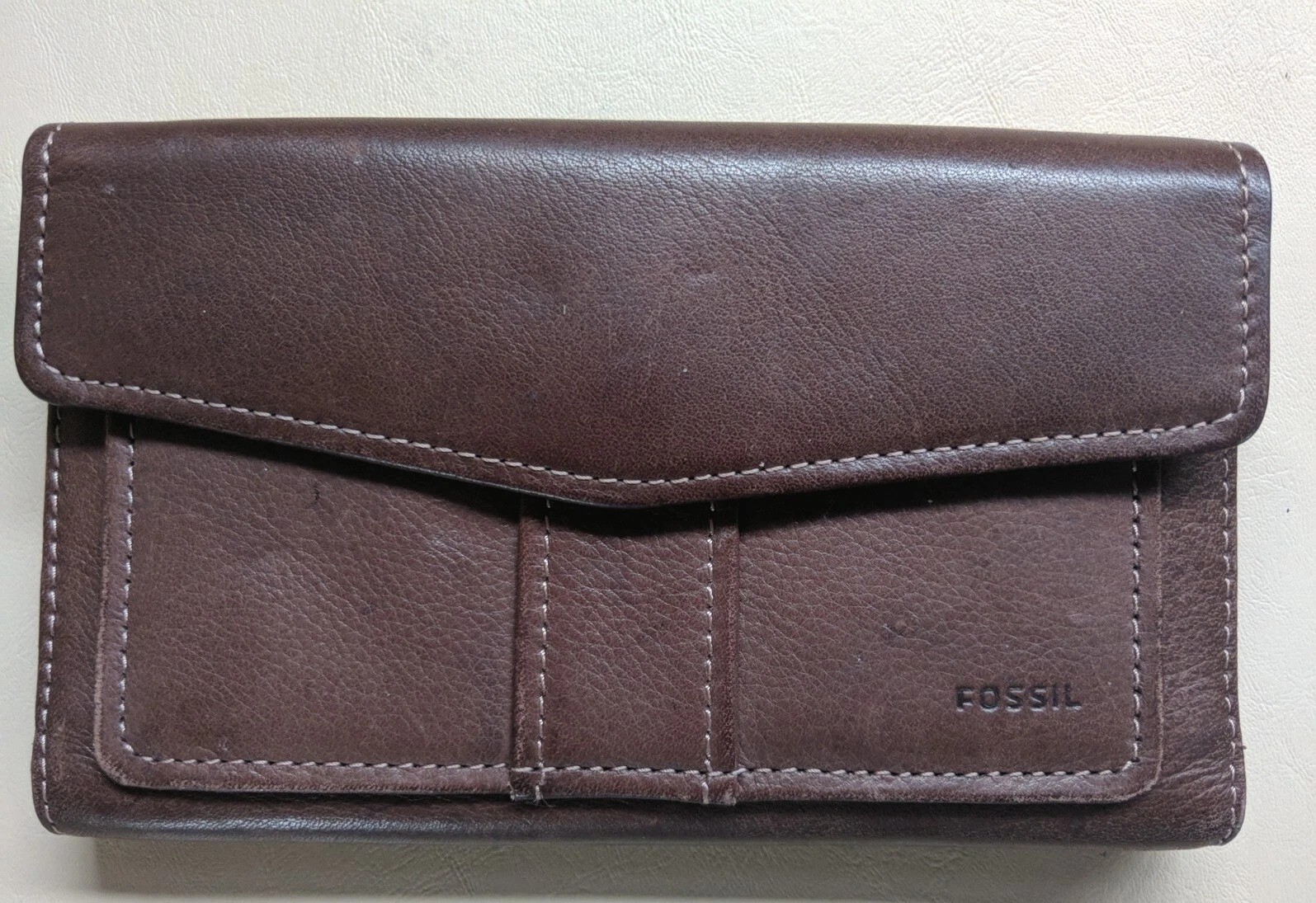 - Fossil Medium Sized Brown Leather Envelope Bifold Wallet with Card Slots U7