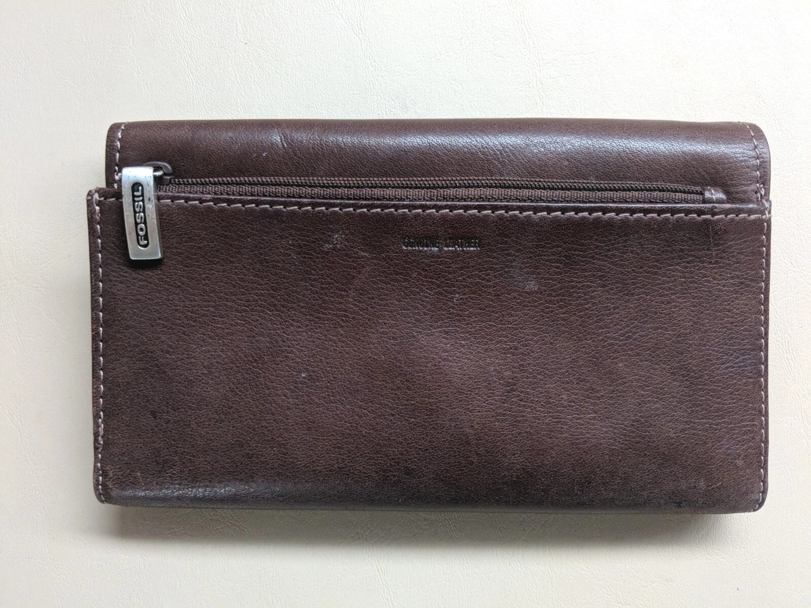Fossil Medium Sized Brown Leather Envelope Bifold Wallet with Card Slots patina
