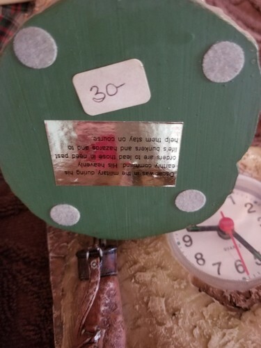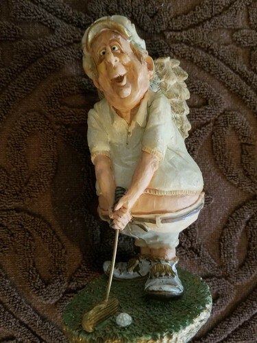 This sale is for four (4) golf theme decorations 1-Shelf Sitter ~ Alligator ~ measures approximately 6" tall 1-Golfer with wings ~ poly-resin statue ~ measures approximately 6" tall 1- 4.5 x 4.5 quartz clock ~ requires one (1) AA battery (not included) 1-4' x 6" picture frame Items are in good ~ pre-owned condition Please view photos for a good description of this item Thank you!