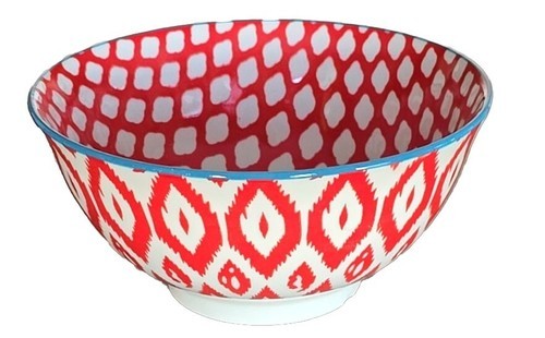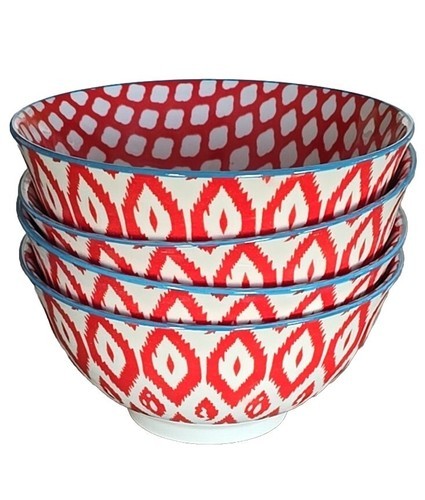 This Sale is for a Set of Four (4) ONEMORE Cereal/Soup Bowls Multicolored Geometric Pattern 22 Ounce Normal Capacity ~ 24 Ounce Maximum Capacity Smooth edge Each bowl measures approximately 6" diameter x 3" tall Durable ceramic for long-lasting use Stackable Oven safe to 480 degrees Microwave safe Dishwasher safe Lead free ~ Non-toxic Bowls are new ~ never used Please view photos for a good description of these bowls Thank you!