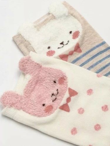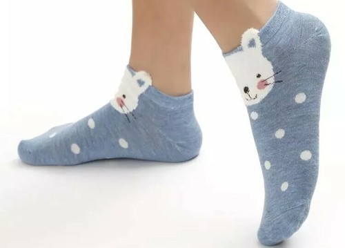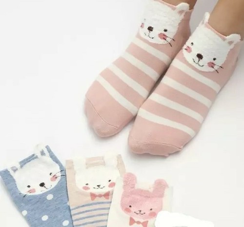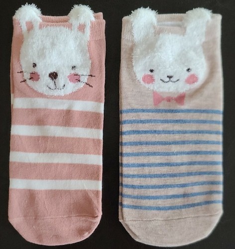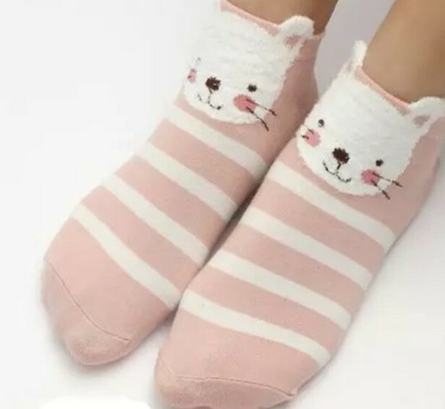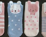 This Sale is for Four (4) Pair of Socks Animal graphic on each pair 1- Medium blue ~ white polka dots throughout 1- Mauve ~ striped pattern 1- Tan blue ~ striped pattern 1- White w/Mauve polka dots throughout Cotton ~ Polyester Blend Tight knit One Size Fits Most Toe to heel (un-stretched) measures approximately 6.5" Back cuff to heel measures approximately 2" Machine wash ~ Tumble dry Socks are new ~ never worn Please view photos for a good description of this item Thank you!