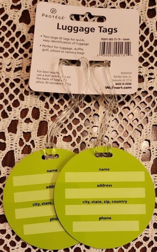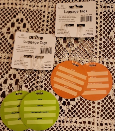 This Sale is for Four (4) Protege Brand Tags Luggage ~ Golf Bags ~ School Bags ~ Camera Bags, etc... Attach to bag with the strong ~ transparent plastic cord Makes it easy to find your luggage or bag at the airport For best results use a ballpoint pen (I used a Sharpie marker) on the back of tags and allow 30 minutes to dry Please view photos for a good description of these tags Thank you!