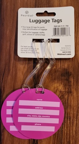 This Sale is for Four (4) Protege Brand Tags Luggage ~ Golf Bags ~ School Bags ~ Camera Bags, etc... Attach to bag with the strong ~ transparent plastic cord Makes it easy to find your luggage or bag at the airport For best results, use a ballpoint pen (I used a Sharpie marker) on the back of tags and allow 30 minutes to dry Please view photos for a good description of these tags Thank you!