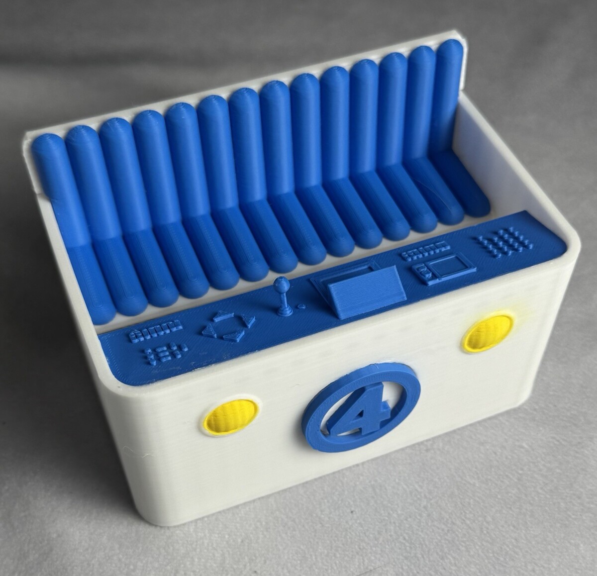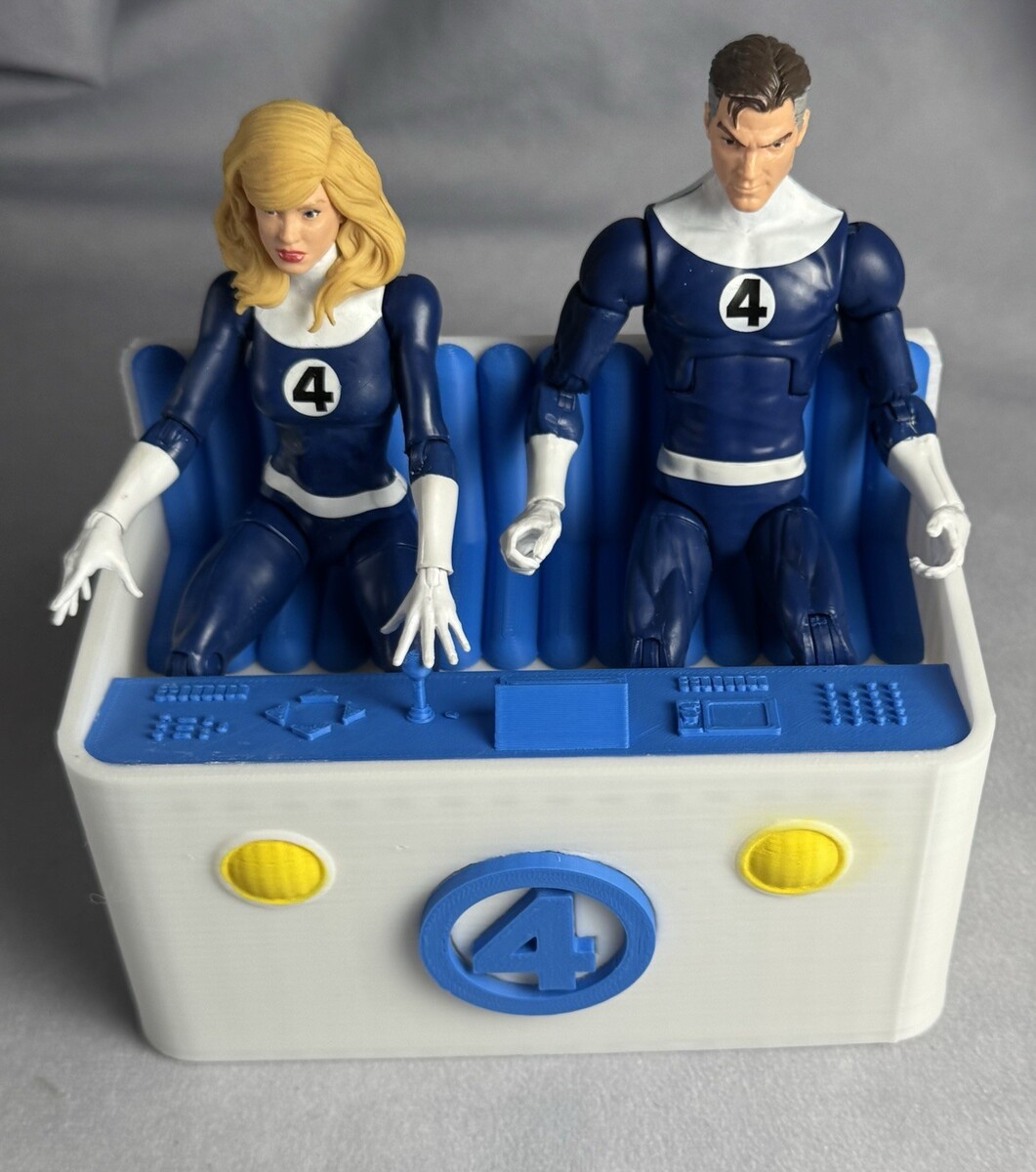 Estate sale find, sold as is, Fantastic 4 flying bathtub fantasticar vehicle toy, (figures shown are NOT included) or other Marvel legends 6? figures, measures about 5 1/4 inches long x 3 1/4 inches deep x 3 1/2 inches high, at highest point, multicolor car, the bench seat is removable, but you?d have to give it a real tug, plastic, 3-D printed, this is nice, displays beautifully, as pictured, condition as pictured, raw 3D print with minor lines, marks, or rough spots, no cancellations or returns, I?ve got more cool toys for sale, please visit my store.
