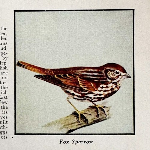 Primary image for Fox Sparrow Bird Print 1931 Blue Book Birds Of America Animals Art PCBG21B
