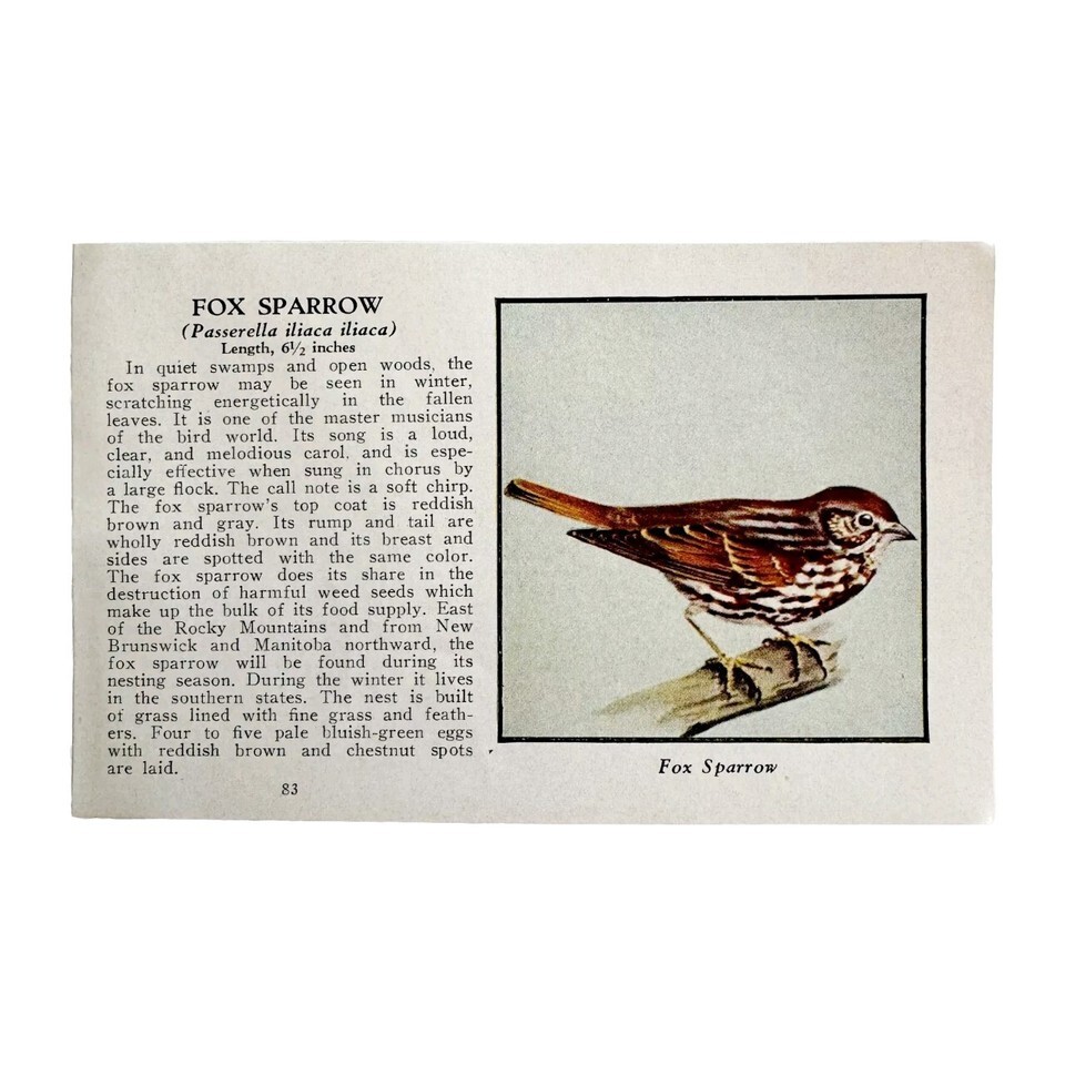 Fox Sparrow Bird Print 1931 Blue Book Birds Of America Animals Art PCBG21B