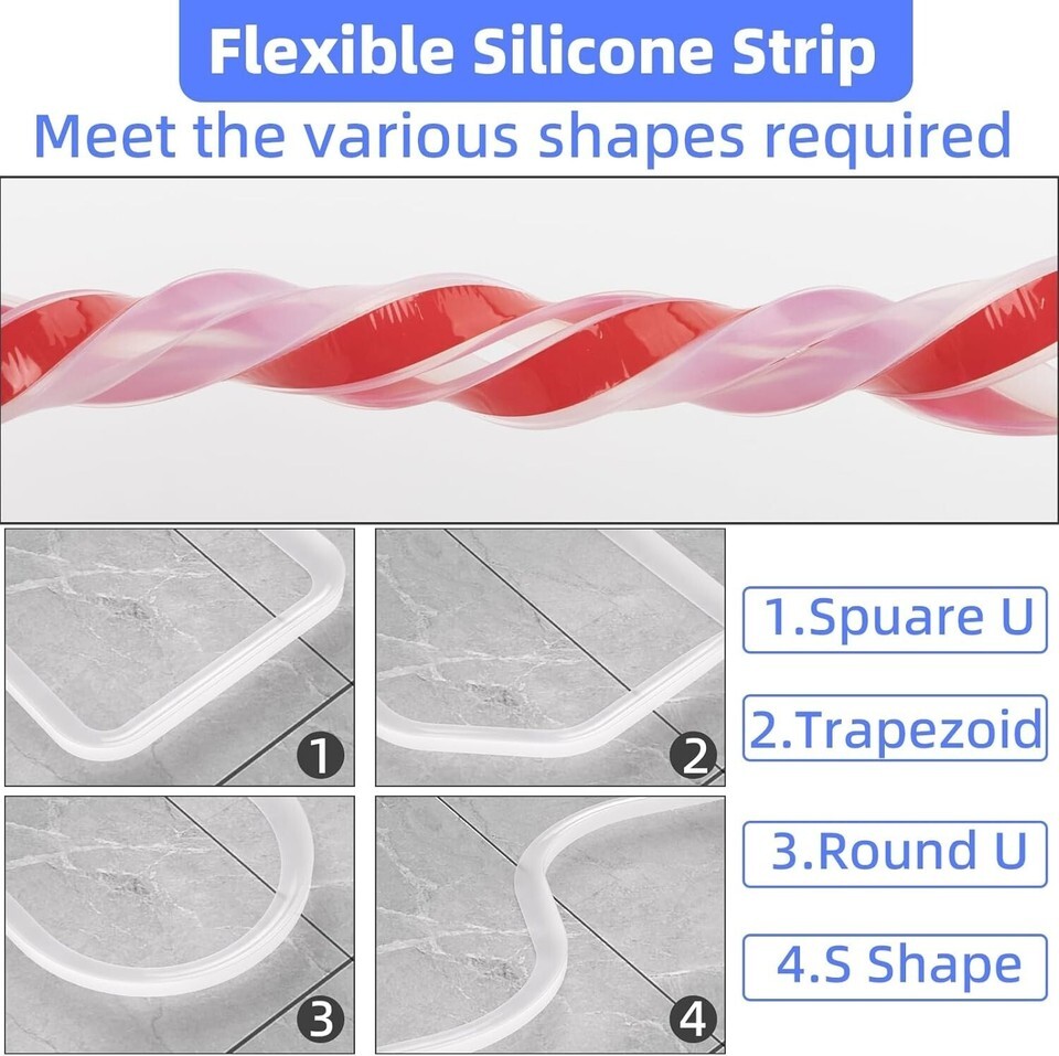 Elevate your bathroom experience with our Frameless Shower Door Water Dam. Designed to blend functionality with elegance, this silicone barrier prevents water from flowing where it shouldn't, maintaining a dry and sleek aesthetic in your bathroom. Its quality construction ensures durability and ease of maintenance, providing you with the peace of mind to enjoy your space.