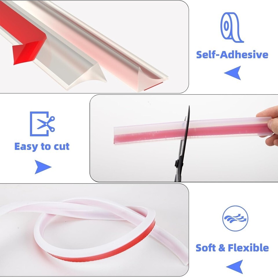 Easy Installation: Simply clean the surface, cut to your desired length, peel the self-adhesive strip, and press firmly. Seal edges with silicone sealant for maximum effectiveness.