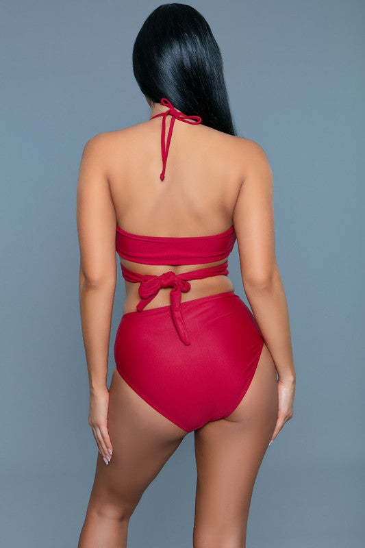 A timeless beauty of the coast, this sophisticated ensemble, is thoughtfully designed for those who seek a blend of classic charm and contemporary flair. This bikini set features a chic wrap top that ties gracefully around the body, offering adjustable coverage and a flattering silhouette that accentuates your natural curves. Paired with high-waisted bikini bottoms that boast stylish ruched sides, this set not only provides a comfortable fit but also adds a touch of elegance with its textural detail.