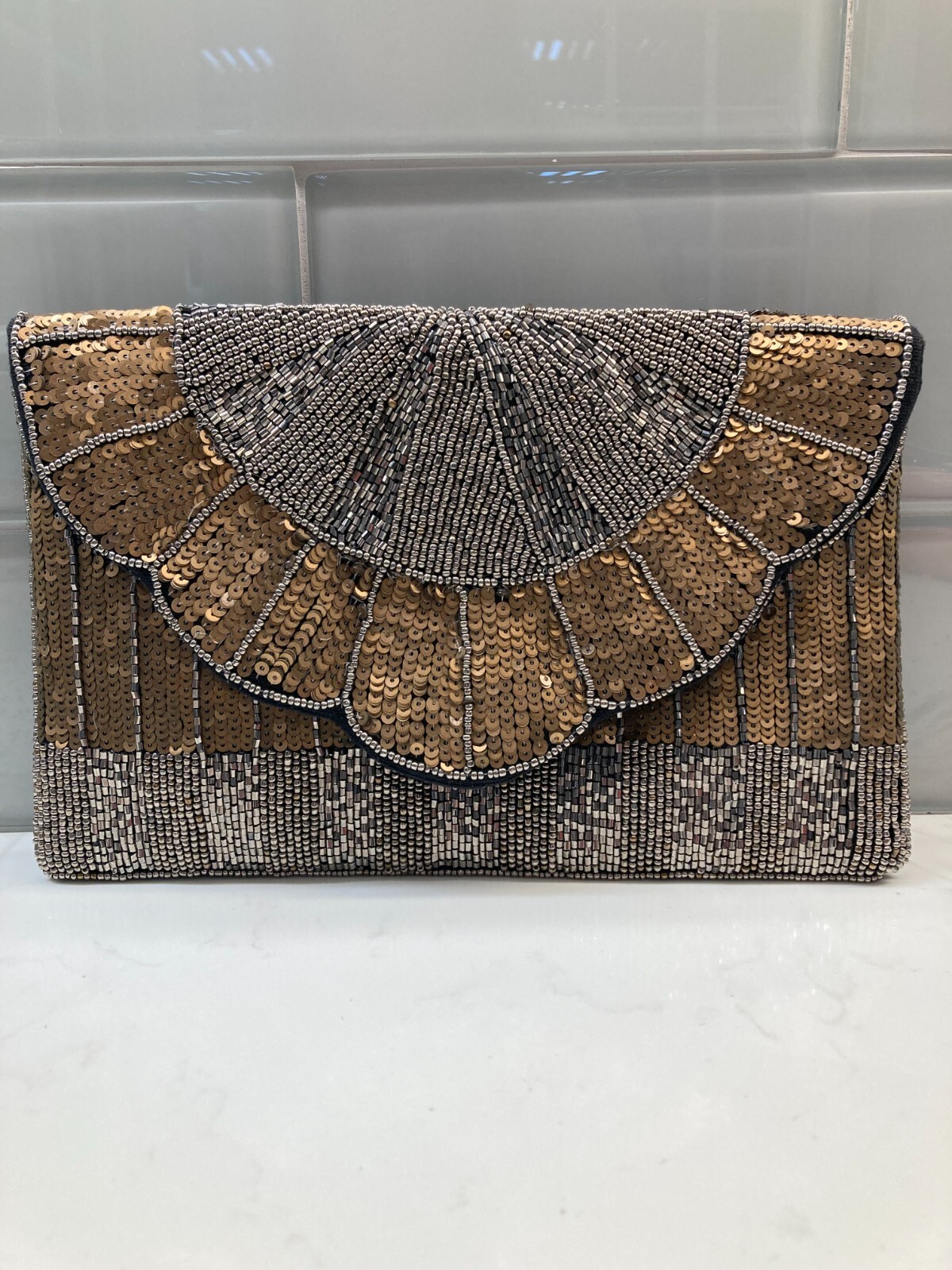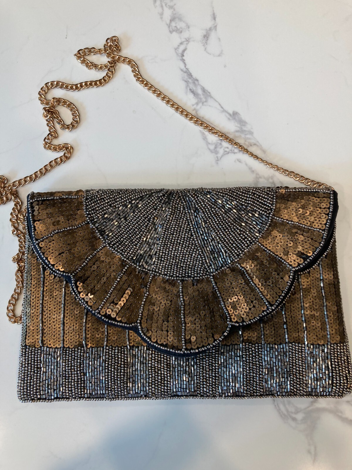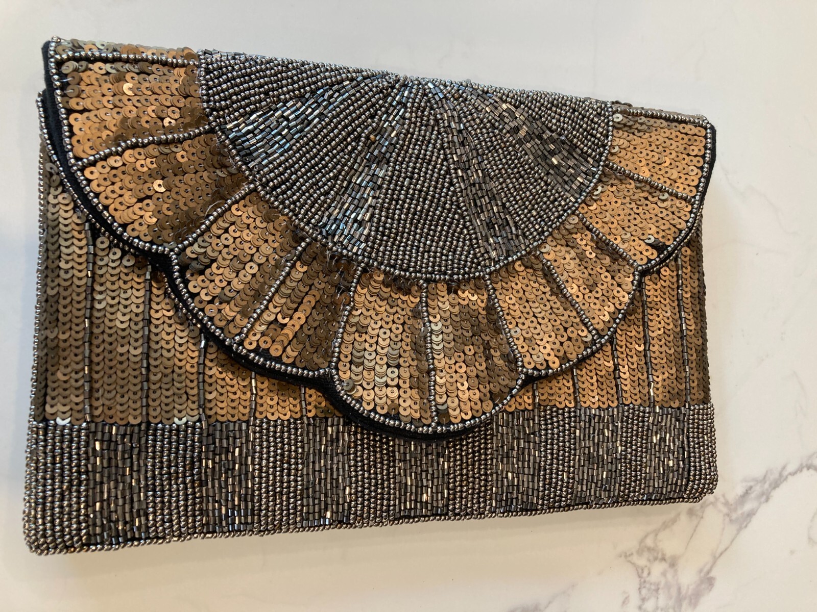 - Francescas Gianna Scallop Sequin Clutch Shoulder Evening Bag Snap Closure Vintag