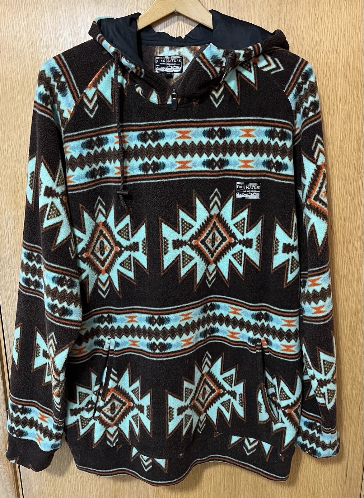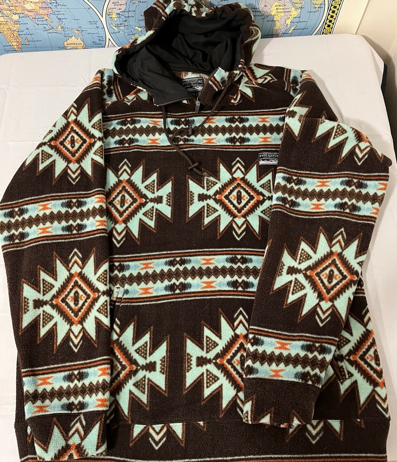 Free Nature Fleece 1/4 Zip Hoody Southwest Aztec Print Unisex Size XL Beautiful