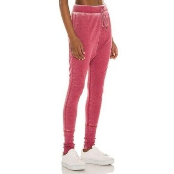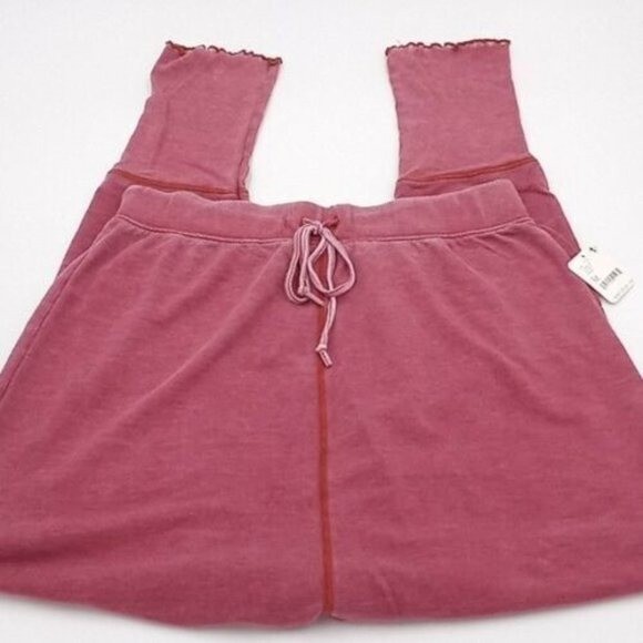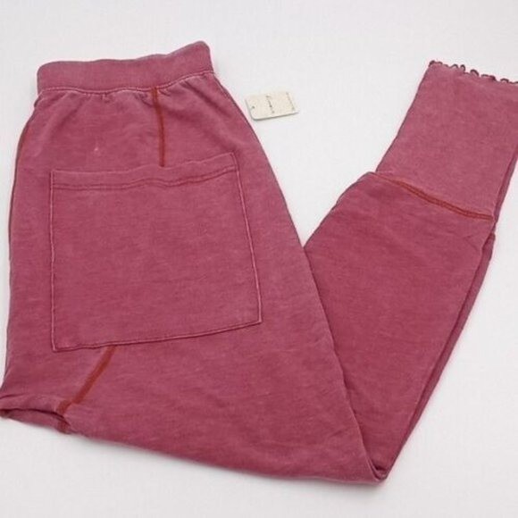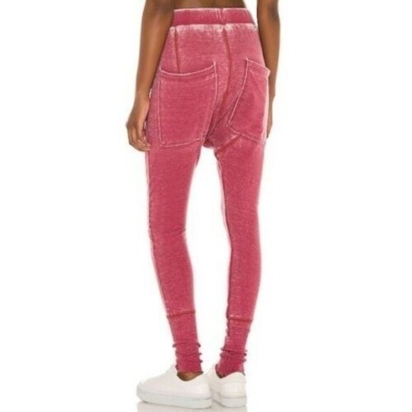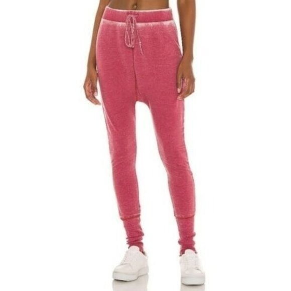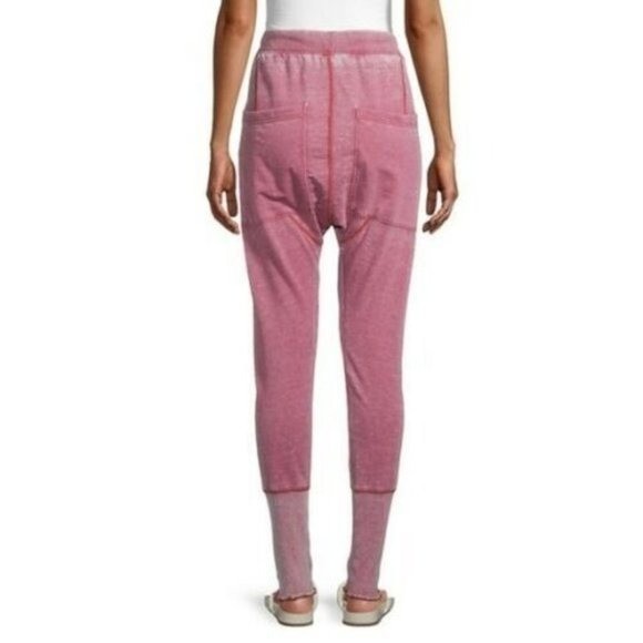 "Winding Roads" Red/Pink Cozy All Day Harem Leggings in Size Medium by Free People. - Red / pink rose color - Comfy, slouchy jogger - Drop-crotch harem style - Drawstring waistband - Lettuce-edge rib-knit cuffs - Pull-on style - Back patch pockets - Lightweight, loungewear style - Machine wash - 54% Polyester / 46% Cotton - Style #OB1255017 Brand new with tags!