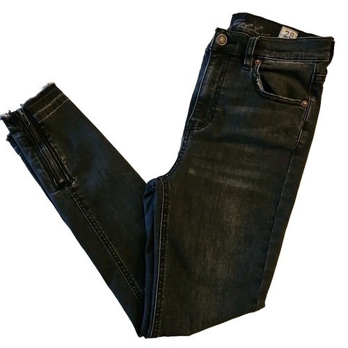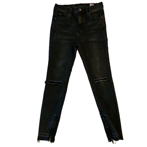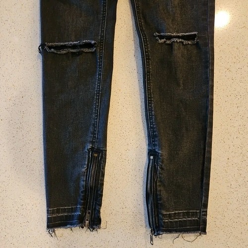Free People Goldie High Rise Skinny Jeans Womens 28 Distresse Charcoal Ankle Zip