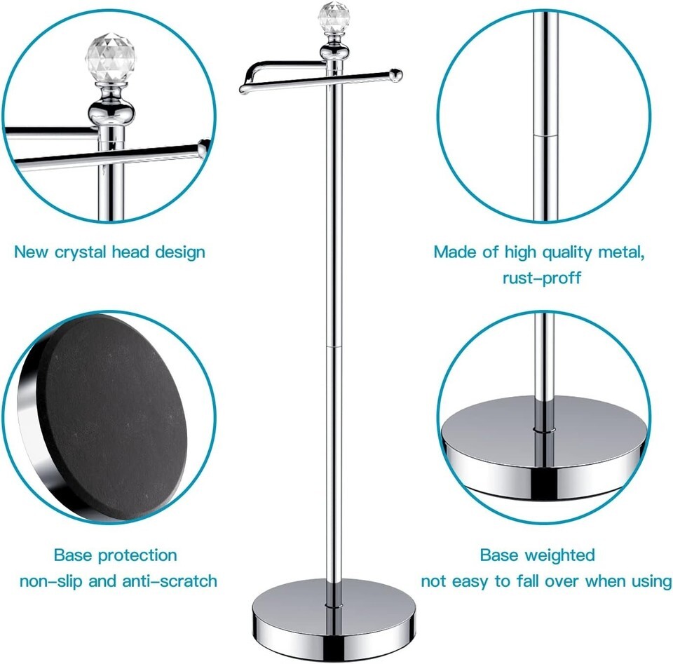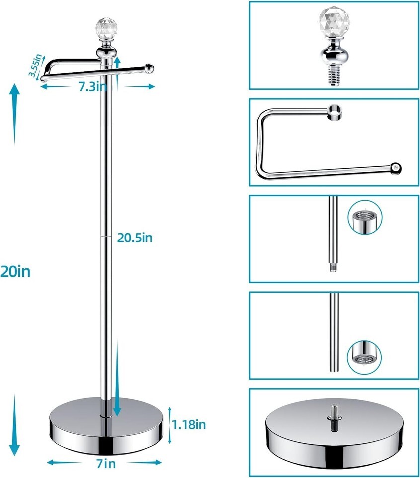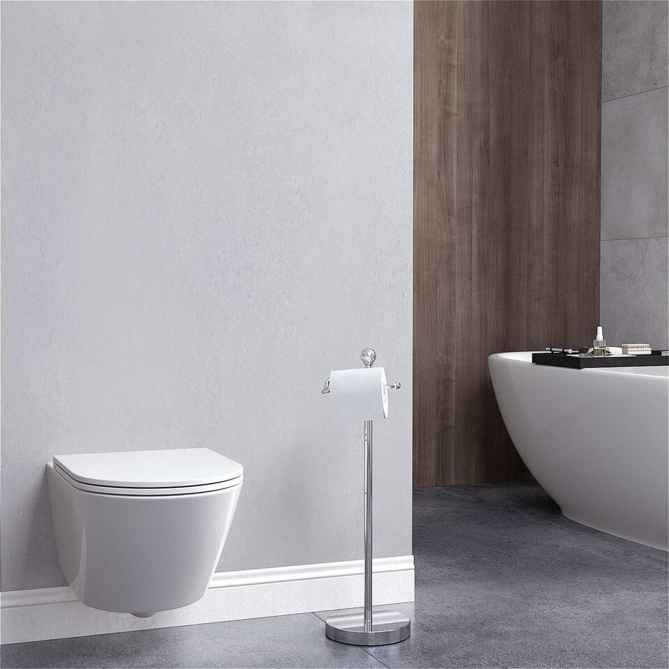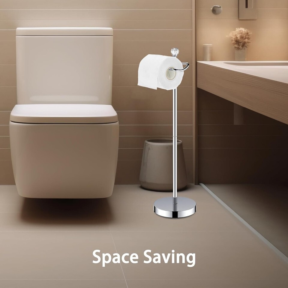 Elevate your bathroom decor with our Free Standing Toilet Paper Holder that combines functionality with elegance. Designed for easy installation and equipped with a space-saving profile, this holder ensures you can maintain a tidy and sophisticated space without sacrificing convenience. With its reserve function, quality materials, and stunning crystal finial, this toilet paper holder is not just a necessity; it?s a chic addition to your bathroom ensemble. Choose sophistication and practicality - order yours today!