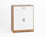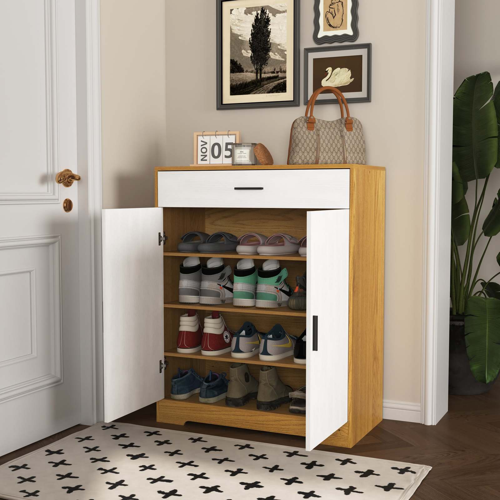 - Freestanding Wood Shoe Cabinet: Adjustable, Drawer, Natural/White