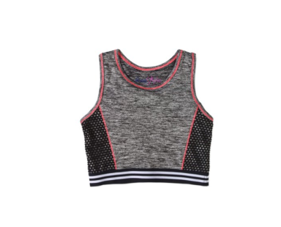 Freestyle Revolution Girls' Active Sports Bra Girl's Size 14 Lightweight More comfortable than your average tank top Mesh side panels Striped elastic waistband hem for a secure fit Printed jersey fabric Made with spandex for comfort and flexibility 92% Polyester 8% Spandex Machine wash ~ Tumble dry Brand new in original packaging Please view photos for a good description of this sports bra Thank you!