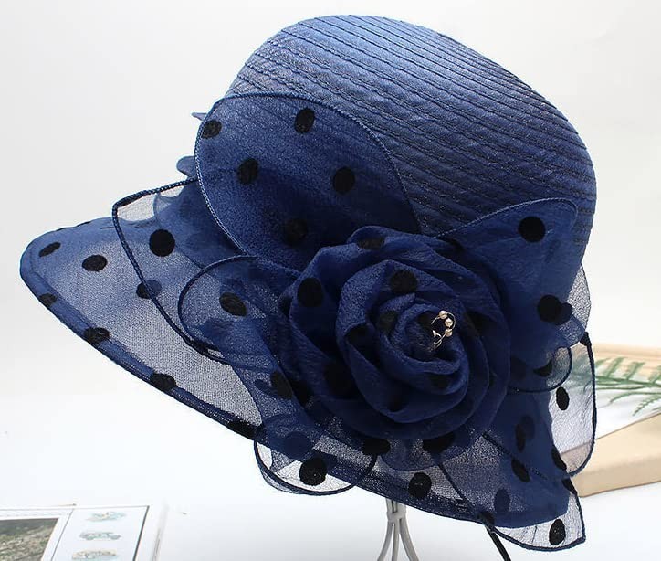 Elegant Organza Kentucky Sun Hat Design: Featuring delicate polka dot accents and floral details, it adds sophistication to any outfit. Enhance your style with our elegant organza fascinator hat, perfect for the weddings, tea parties, and church events