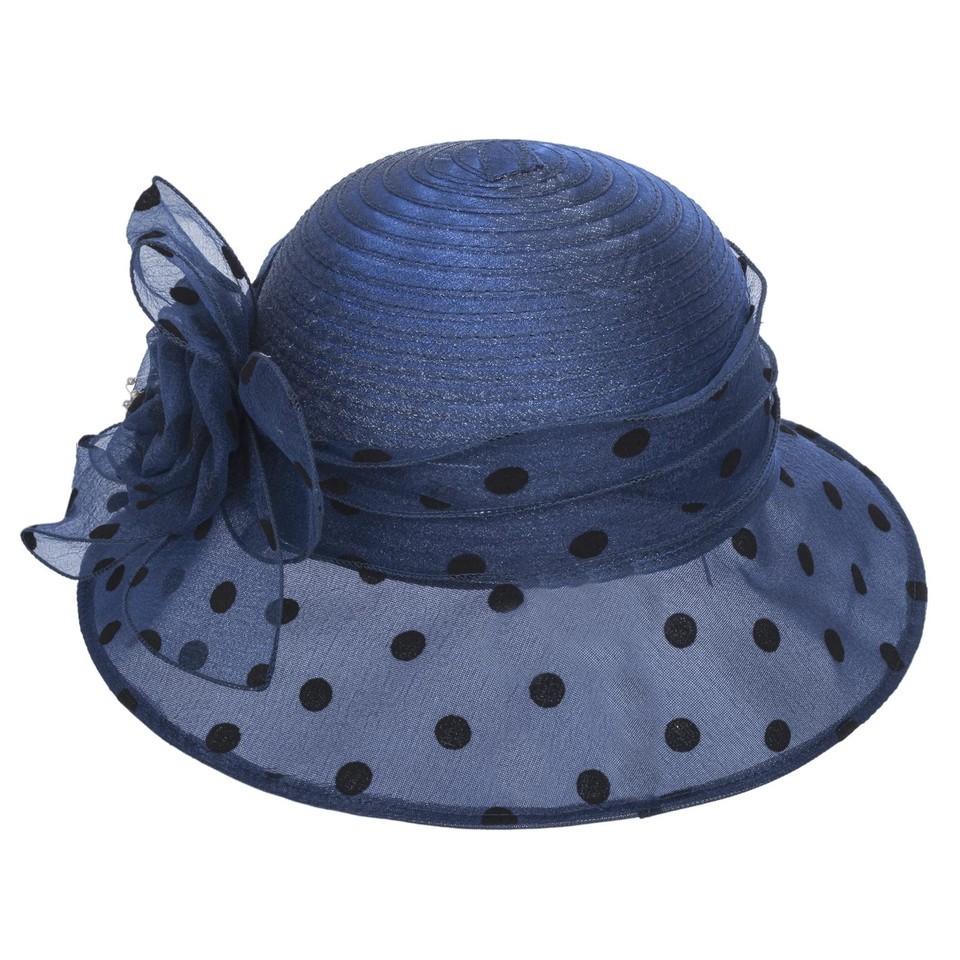 French Kentucky Women's Polka-Dot Organza-Brim Derby Hat Navy