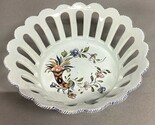 French Made Decor Rouen Fait Main Reticulated Floral Basket - 7?D. In used condition. There are no cracks or chips in the basket. There are some marks and stains from age and use.