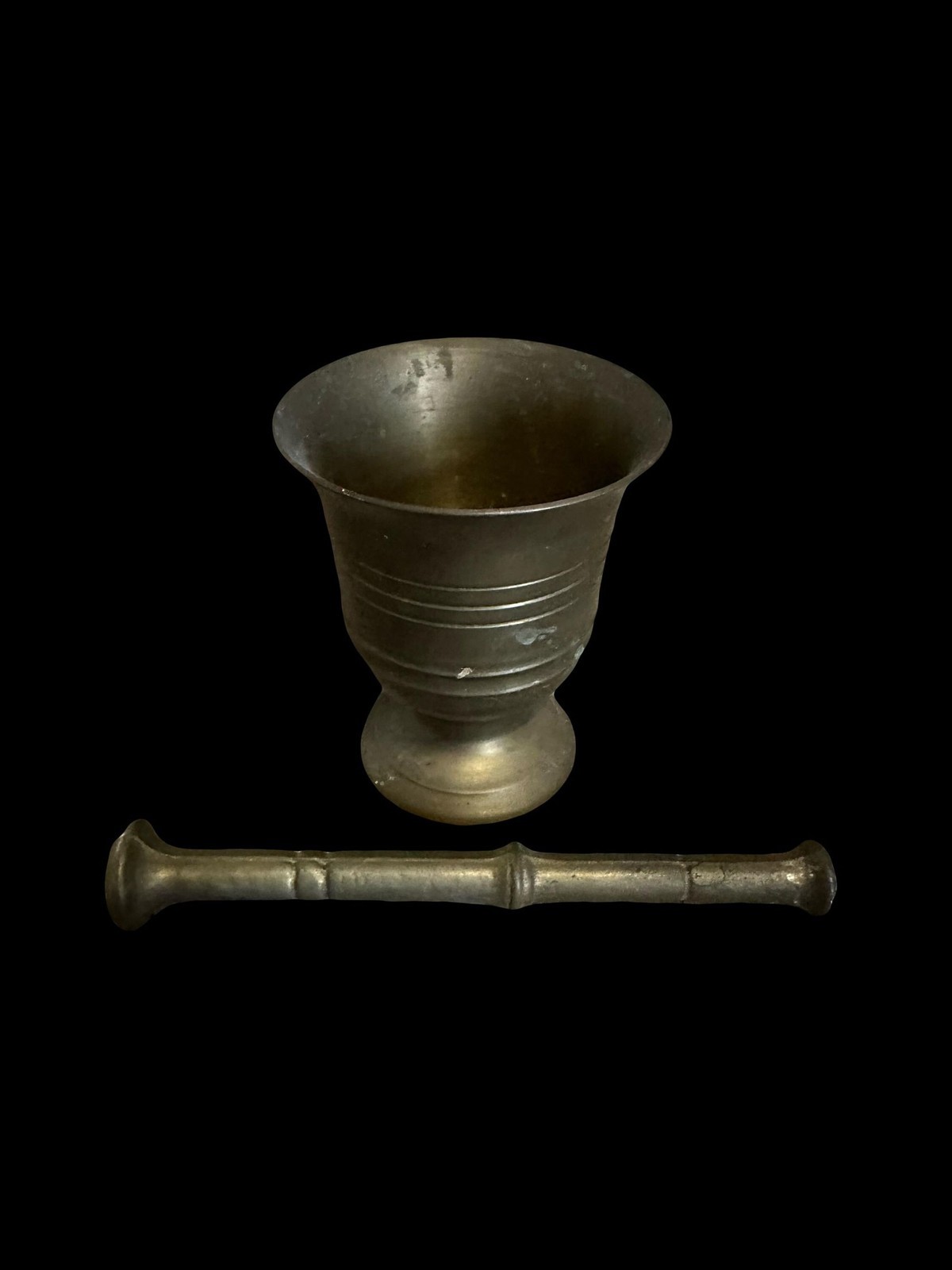 - French vintage bronze / brass apothecary mortar and pestle authentic from France