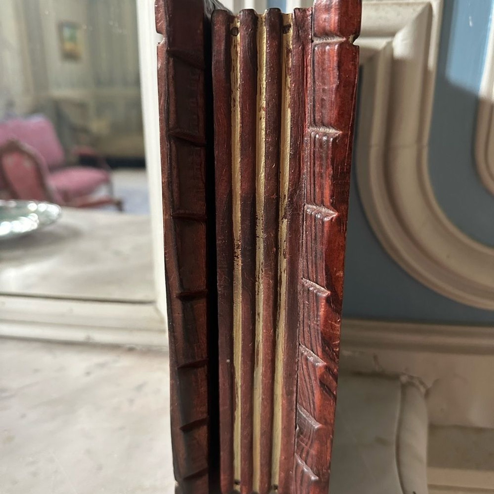 French vintage hand carved wooded book box with lid: secret book with hinges