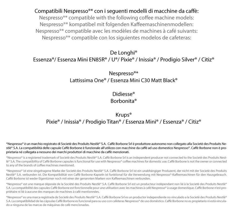 Compatibility: Caffitaly,Cafissimo,Dolce Gusto,Keurig,L'OR Expresso,Lavazza,Lavazza Blue,MyCup,Nespresso,Originalline,Republica Organic,Senseo,Tassimo,Verismo,Vittoria