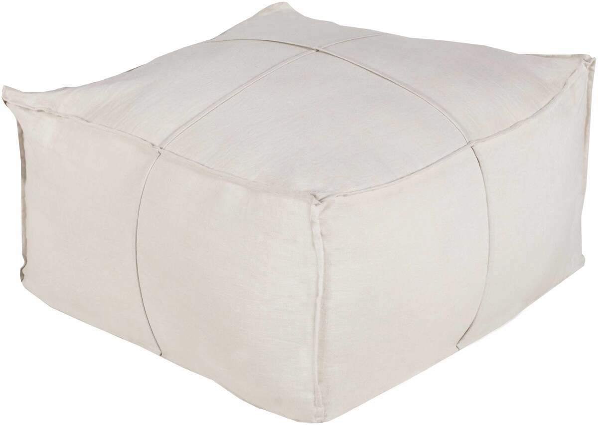 - Friendsville Linen Cotton Woven Solid and Striped Ivory Pouf